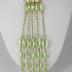 A gilded pinchbeck chain with five pendants of graduated pale green nacreous seed-shaped beads, connected with pinchbeck jump rings, which are held with plate of two bead rows, matinee length, has a screw clasp.