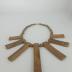 Necklace of wooden spindle-shaped beads and seven rectangular graduated wooden plates in the center, separated by spindle beads, opera length, with screw wooden clasp.