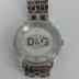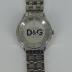 D&G men's stainless steel wrist watch, water resistant up to 5 ATM. Consists of polished silvery steel case and bracelet, decorated with two rows of rhinestones along the rim and an oval insert of rhinestones in the center of the case with a black enameled brand logo.