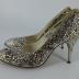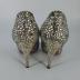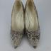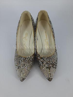 A pair of pointed toe crystal pumps, covered with ivory silk and studded with transparent rhinestones, with 9 cm high stiletto heels, leather soles, nude leather lining, crystal studded heel pitches and metal Lu-Lu's studs under the toes.