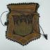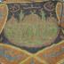 A diamond-shaped Ottoman knitted lady’s bag with a central view of a mosque Hagia Sophia and an inscription in Old Turkish, that are made in brown and green, edged with black metallic lace, has drawstring closure with tassels.