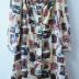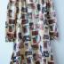 An ivory silk robe-dress with a vintage lovers' photographs and scattered inscriptions “Uniamo i nostri cuor” (Let's unite our hearts) print; waist-cut, fastening with seven brown, horn imitating, buttons, has long sleeves gathered at the shoulders, a narrow turn-down collar and cuffs.