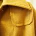 Schiaparelli wool coat of tan-colored herringbone with two large rounded patch pockets at the hipline and one small patch pocket on the left shoulder, has wide turn-down collar, single-breasted with five buttons fastening, dropped shoulder sleeves with under arm gussets, additional inserted rear gore, and tone-on-tone damask lining with "ES" logo.