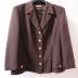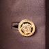 A single-breasted brown wool twill lady's jacket with notch lapels, fastened with five gold buttons engraved with the Versace' "Medusa", has one more button on each sleeve vent and one on each flap on the two false pockets at the bottom of the foreparts.