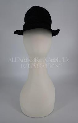 A black felt ladies’ shovel hat with raised at front crown.