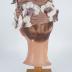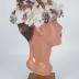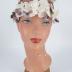 A couture flower hat of white and mauve silk muslin flowers completely covered an ivory cotton tulle base, embellished with a beige shantung ribbon and an ivory grosgrain sweatband inside.