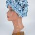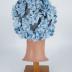 A "Flower bomb" sky blue bubble hat with high, rounded tulle and silk satin dome, completely encrusted with three-dimensional silk flowers, has blue grosgrain Petersham ribbon.