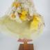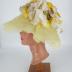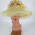 A lady's wide-brimmed picture hat made of lemon-yellow crin, the brim binded with yellow velvet and covered on top with five flyaway layers of yellow tulle, the crown has a yellow velvet ribbon in the base, that tied in a large rear bow, the crown completely covered with sprigs of yellow and beige silk muslin flowers and white silk muslin petals, the rear bow secured a bouquet of two white silk roses.