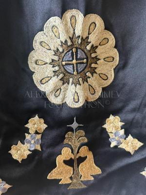 Evening gown in black satin silk embroidered in the Russian Style. Attributed to House of Kitmir (French (Russian origin), 1922 – 1928)