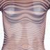 A cinnamon silk jersey tube dress with graduated navy stripes that create a stylized pattern that follows the contours of a woman's body. From Jean Paul Gaultier SS 1996 collection.