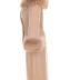 Oatmeal suit of boucle wool with fox fur collar and cuffs. Suit consists of jacket and straight skirt from the same material.