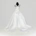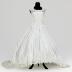 Satin wedding dress with train, top decorated with laces, embroidered with beads, bottom decorated with laces.