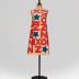 This dress is known as "Nixon for President" or "Nixon Now" (with the play of the letters on the optical effect). This Paper Dress is an example of a disposable gown, very popular from the 1960s era of mass consumption. In 1968, disposable dresses were used for the political campagn of Nixon. This dress is one of the first examples in the fashion history where politics use clothing as a medium for a political message.