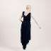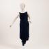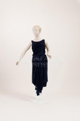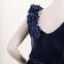 Panne velvet dark blue evening charleston gown with 5 velvet flowers on the left back shoulder