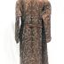 Shawl collar oriental style dressing gown with fitted long sleeves, 2 curved patch pockets and a matching tie belt.