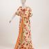 Orange silk garden party dress, belt with amber buckle.