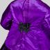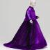 Purple silk evening dress with black Chantilly lace consisting of a long sleeved caraco mantle, a top, decorated with black colour rhinestones, and a crinoline skirt.