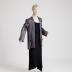 Blue and gold brocade evening jacket, reversible with diamond pattern, slightly flared long sleeves with shoulder pads, gathered by armscyes, patch diamond-shaped pockets on the foreparts.