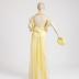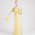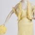 Yellow cotton tulle dress with a bolero-shaped bodice trimmed with tulle ruffles along the hem and armholes; the skirt, stitched onto the bodice with zigzag, with a thin yellow ribbon at waistband, rear tied; a tone-on-tone silk muslin slip with spaghetti straps.