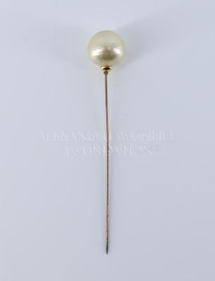 Hat pin composed of a round pearl bead head and a mid-short spike.