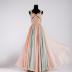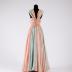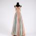 Germaine Lecomte couture ball gown of grey-blue and pink silk chiffon. Sleeveless and gathered in a Greek chiton style, has a belt-rope twisted from two strips of chiffon and glass beads embroidery on the bodice, lined with rayon faille.