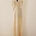 Silk long pink negligee with floral embroidery on straps and an ornately shaped bottom edge of the skirt.