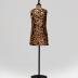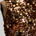 Brown silk cocktail tunic fully embroidered with copper colour sequins and gold colour half spheres.