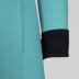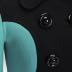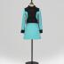 Futurist design turquoise and black woolen suit, consisting of a mini dress and a jacket with a black front part in the style of a livery.