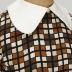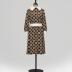 Day silk dress with white plastic collar, belt and cuffs.