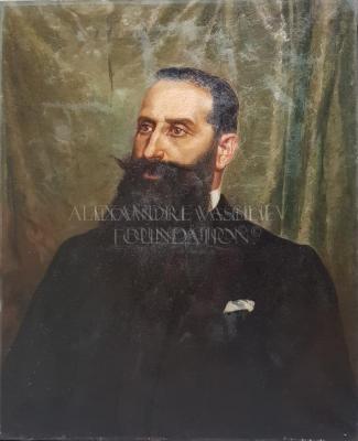 Painting portrait of a darkhead man with a beard. Accompanied by a separate portrait of his wife.