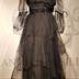 Evening gown in black tulle on the waist line embroidered with sequins .