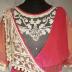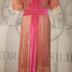 Muslin ball gown with lace, velvet and beads. The dress is decorated with embroidery on a sirloin mesh (not referred to as lace). First, a mesh is woven, and then various seams are made along it. In this case, the main pattern (vine) is darned, the rectangular cross-shaped figure is filled with a star stitch. The four-petal flower under the pink fabric of the dress is made with a linen seam and trimmed with voluminous satin stitch. Machine tulle, sewn to the fillet embroidery, creates a contrast with the fillet cells, which creates a "lacy" effect of the background. The embroidery is done in silk.