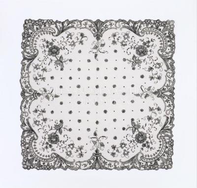 Black handkerchief, in machine embroidery lace on a machine grid, usually used during mourning period.