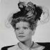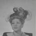She wears a veiled hat with feathers, designed by Gérard ALBOUY. She is dressed in black and she has a necklace.