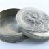 Box for jewellery or cosmetics in tin metal with floral decoration in Art Nouveau style on the lid.