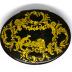 A patch box with the interior in vermeil silver. A mirror under the lid surrounded by solid silver. The exterior is covered with a solid gold inlay marquetry illustrating a famous Fontaine's fairy-tale "Le Corbeau et le Renard" ("The Fox and the Crow"). The Crow is missing from the scene. There is a hallmark inside the box.