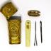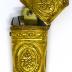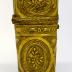 Pomponne metal travel sewing kit containing ivory writing plates and tweezers.
