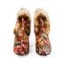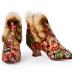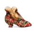 Pair of silk brocade shoes in autumnal color floral pattern and lined with fur of ferret.