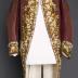 Formal coat. Brown silk faille, silk floss floral embroidery in ivory and autumn shades, high stand collar, 22 embroidered buttons, side flap pockets, glazed linen lining, ivory satin facing.