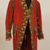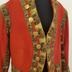 Red woolen servant's coat livery trimmed with the gallon, gilded buttons representing the family shield and an earl crown. Comes from the Austria-Hungarian Empire arictocratic count family.