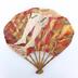 Advertising fan for department store "Galeries Lafayette". In a fontange shape (shell shape), very particular for publicity fans, with on the one side an engraving representing an advertisement for "Gina" and "Rym" stockings, on a background consisting of an Art Deco fabric with gold highlights and pseudo-sinograms, the stockings are presented unfolded to the knee.