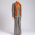 Accompanied by orange shirt "Jeff Brenton"; orange tricotine tie with "Jockeys" print, labelled “Hermes"; orange scarf with oriental pattern in green-yellow polyhedrons, made in Italy.