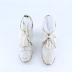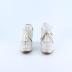 Pair of ankle boots for young girls with silk shoelaces, decorated with perforations representing floral patterns.