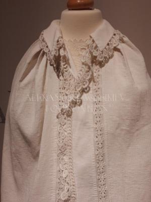 Piquet of cotton baby Christening cape with Machine embroidery and chemical lace.