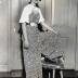Paper photograph depicting a young woman wearing the red and white pebble crepe pajamas which she would model at the fashion show, to be held February 27th 1933 at the Hotel Plaza for the benefit of the work of the emergency relief committee of the church-women's league for patriotic service.