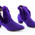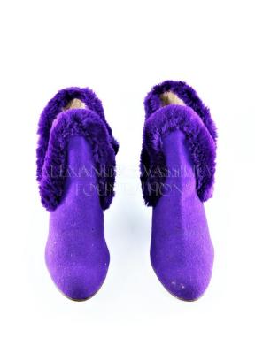Pair of ladies' winter ankle shoes on a square heel, in purple felt edged with the same tone plush trimming all over the board of cut out on sides.