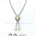 Jewelry set composed of a necklace representing the head of an Asian princess crowned and with a tiara inside of a rectangular medallion from which is suspended two similar heads but simply crowned. The necklace comes with a identical Asian princess face mounted in brooch and in two different pairs of earrings.