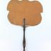 Face fire screen on a multi-lobed cardboard with a turned wooden handle decorated with a colored engraving depicting a cattle fair in a country town. The main scene represents a pork dealer negotiating with a young peasant woman. The back scene shows a man pushing a pig along like a wheelbarrow.