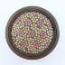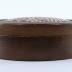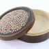 Large round box in wood, handpainted and carved on the top with an Art Deco stylized Russian design of small flowers of pink and pale peach colours. The case is signed by the Russian emigrant artist.