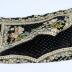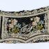 Pocket flap cut out from a men's blue silk velvet coat with stripes and polka dots entirely embroidered with multicolored floral patterns